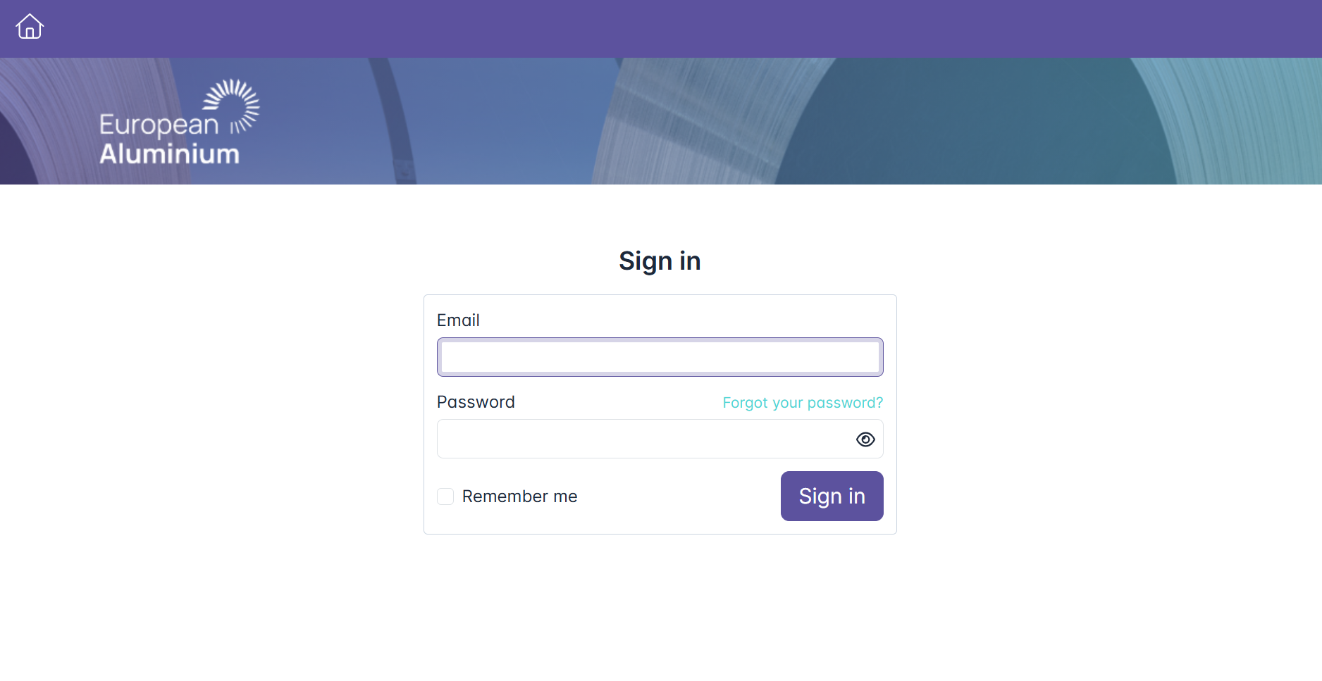 You can access the EA Members HUB via https://members.european-aluminium.eu/. Input your company email & your password and click sign in.