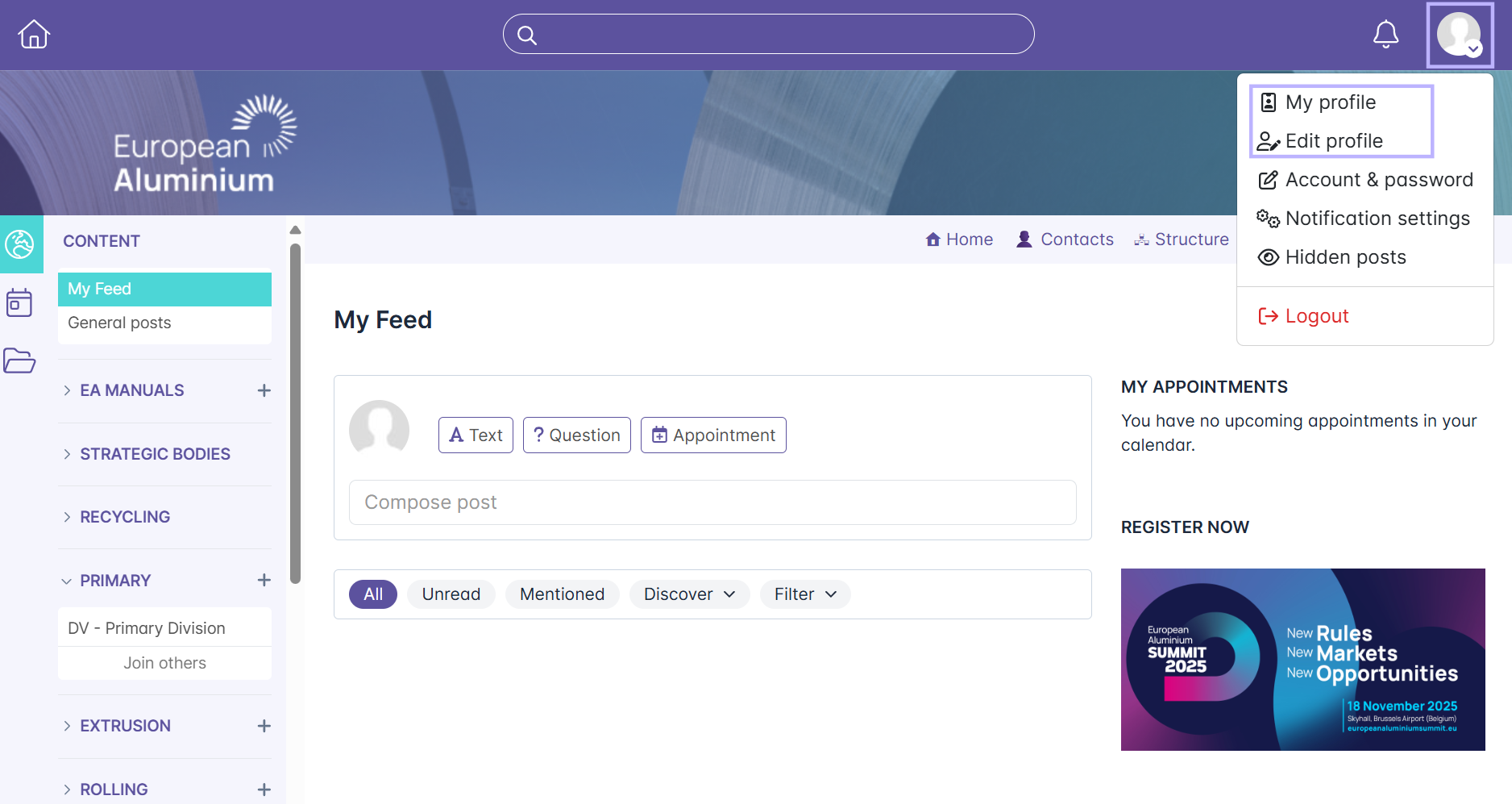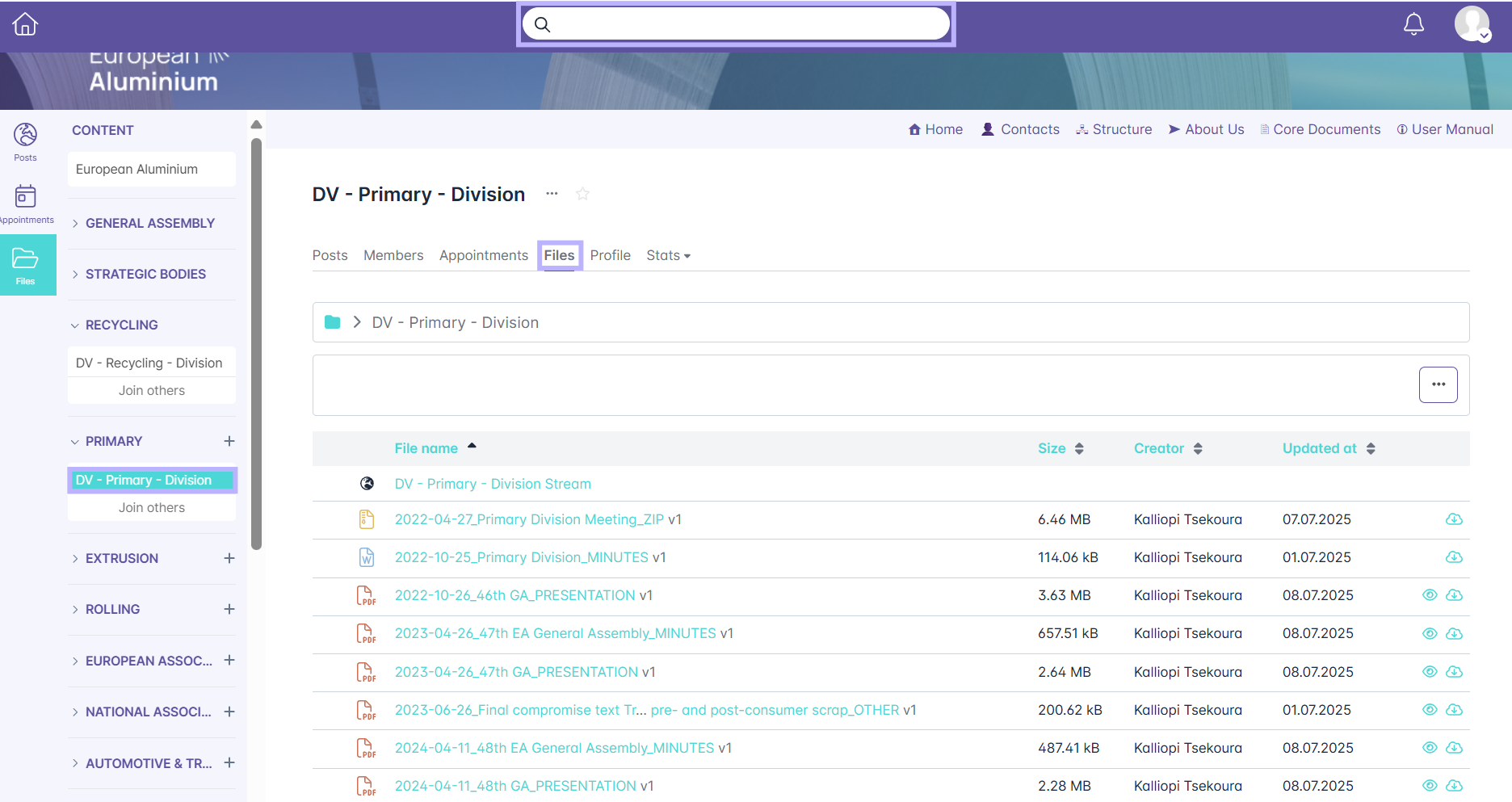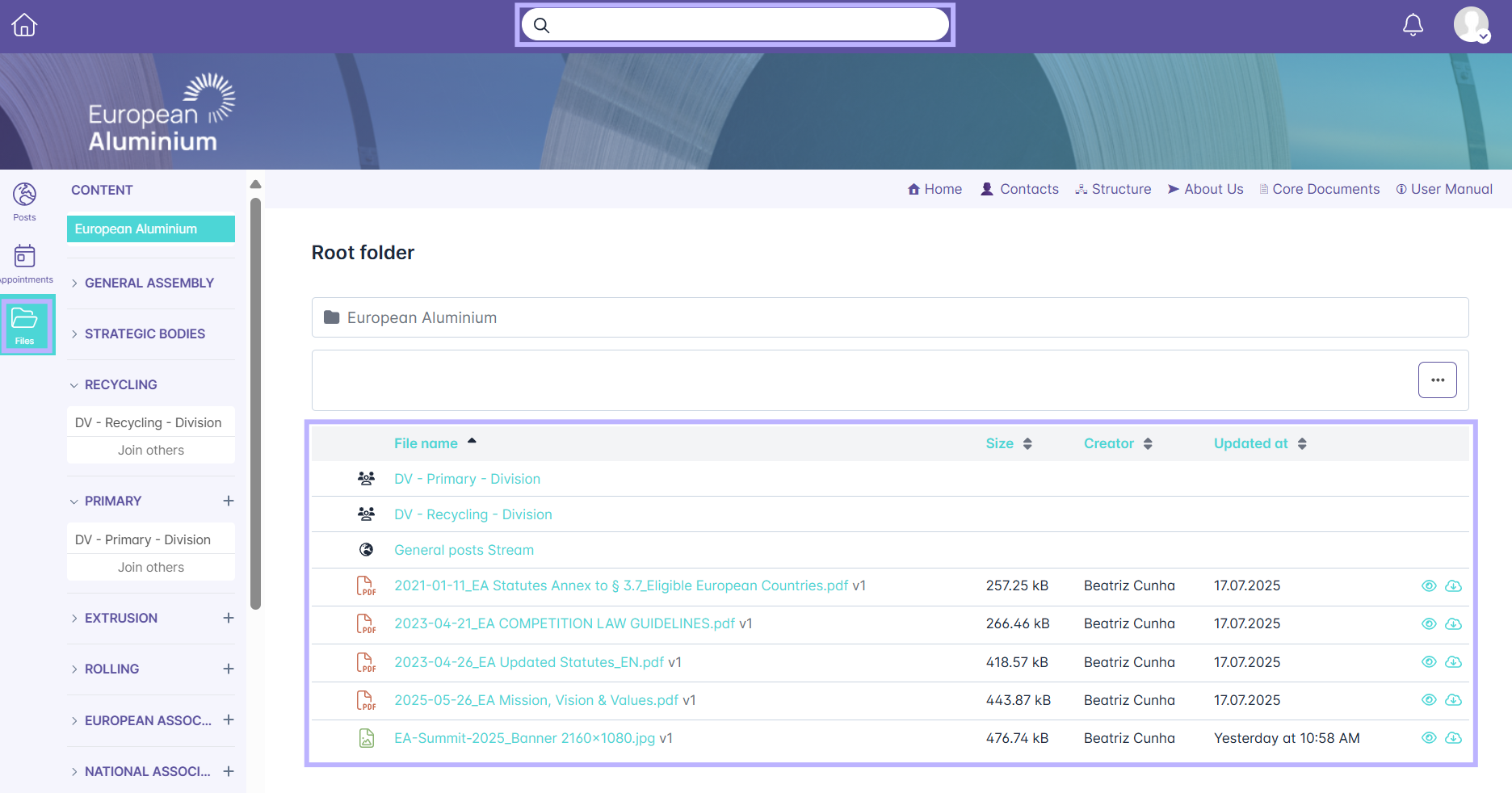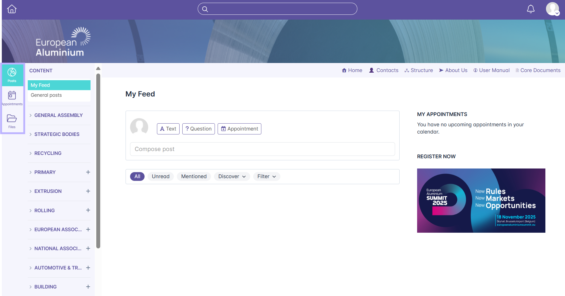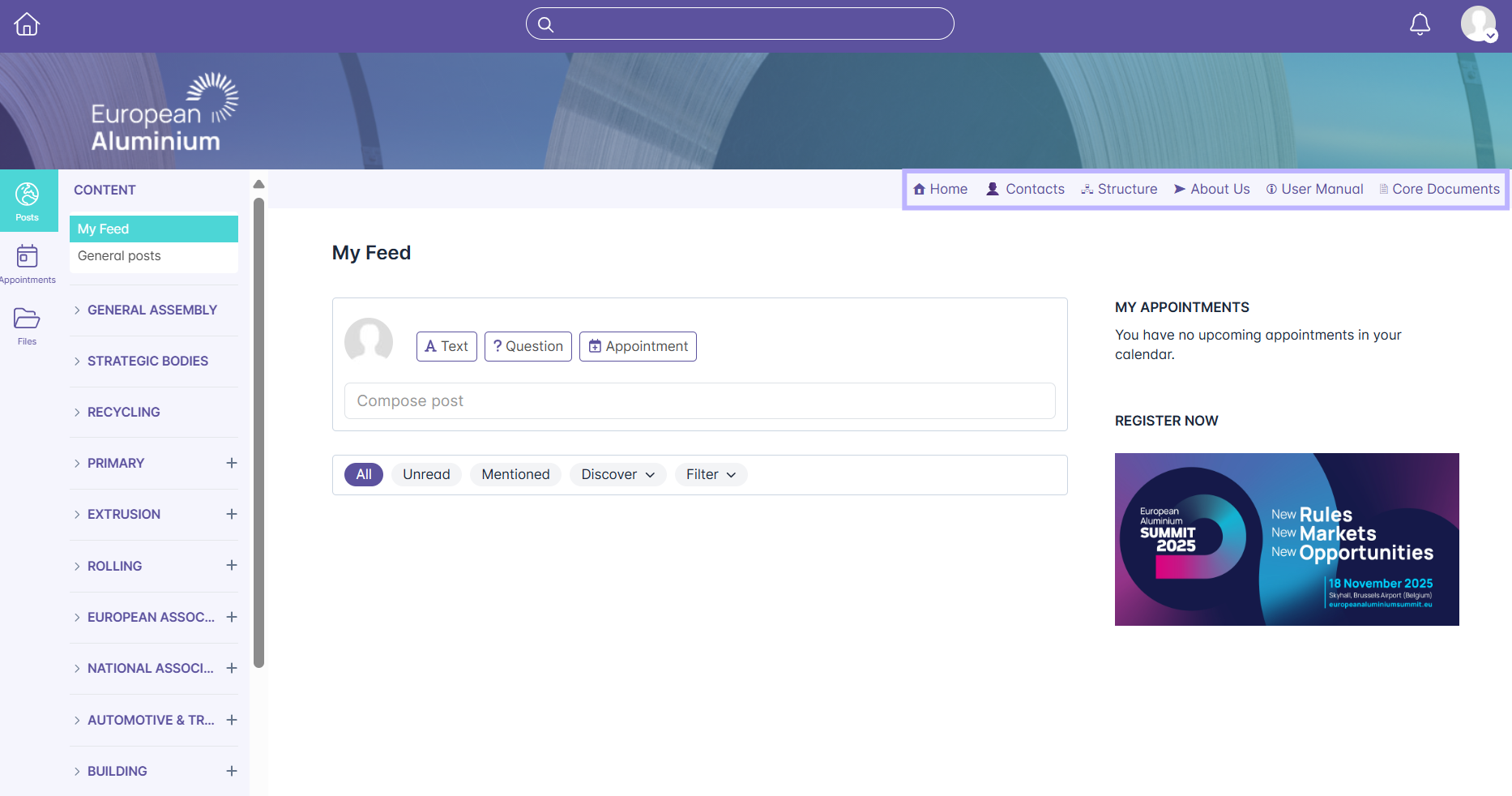 Each group has its own page, where you’ll find the name of the group coordinator listed at the top. If you’d like to join a specific group, you can contact the European Aluminium coordinator via email to request access.